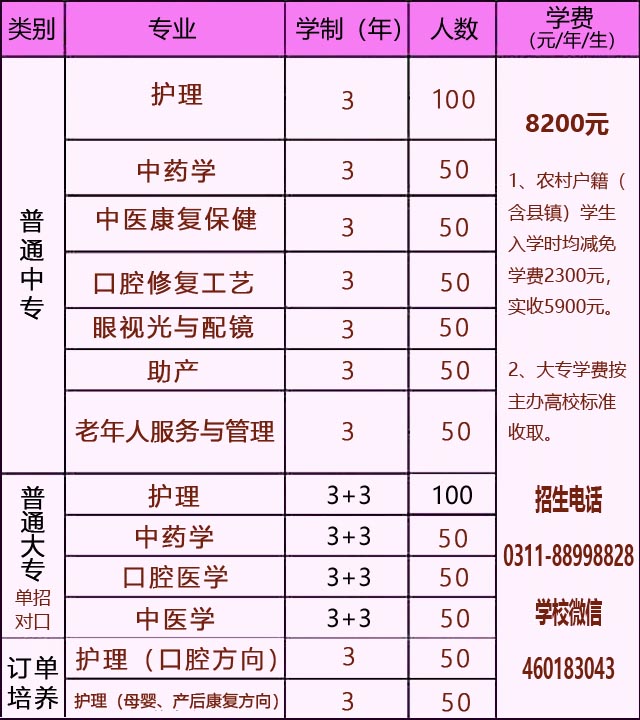 我校與近百家解放軍、武警及地方醫院建立了長期合作關系并簽訂實習就業協議,是醫院合同制護士定點培養選拔基地;獨特的訂單培養模式,為畢業生就業提供了更加可靠的推薦。 ,學生畢業后,學校負責全部推薦到石家莊、北京、天津、太原、邯鄲、唐山、秦皇島、沈陽、大連、長春、鄭州、武漢、南昌、嘉興、合肥、西安、蘭州、成都、上海、杭州、無錫、徐州、廣州等解放軍、武警及地方醫院實 習就業。實習結束未被醫院錄用,學校負責二次安排就業,不收任何費用。
